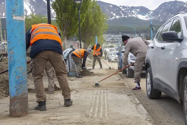 El secretario de Medio Ambiente, David Ferreyra, explicó que “estuvimos trabajando en veredas y calles de distintos barrios que sufrieron anegamientos por la salida de cauce del arroyo Buena Esperanza”, entre ellos “Aldo Motter, el camino al Glaciar Martial, Fuegia Basket, Damiana Fique y arterias aledañas”.