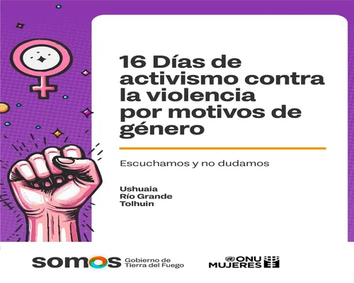 Con motivo del 25 de noviembre, Día Internacional de la Eliminación de la Violencia contra la Mujer, el Gobierno de Tierra del Fuego, a través de la Secretaría de Derechos Humanos e Igualdad, se adhiere por segundo año consecutivo a la campaña global “16 días de activismo” impulsada por ONU Mujeres. Bajo el lema “Escuchamos y no dudamos”, se llevarán a cabo diversas actividades en Río Grande, Tolhuin y Ushuaia