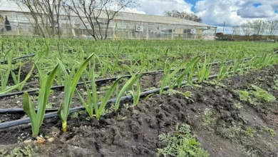 Río Grande implementa un sistema de riego por goteo en la plantación de ajo violeta para optimizar la producción local